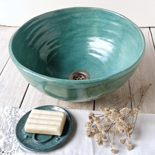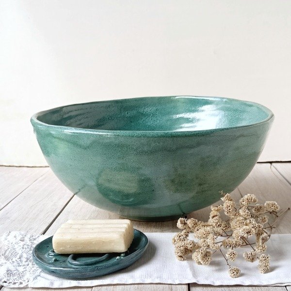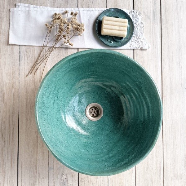 Bordes ligeramente irregulares,formas orgánicas. Superposición de esmaltes. Aplicación a mano tipo pátina.